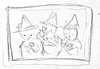 Wide angle shot of witches playing with their dolls. One witch tosses her doll in the air. The additional dolls that the witches created are placed throughout scene. Put the leader doll in a prominent position.