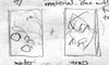 Paired shots. First frame has dolls in the extreme foreground watching the departing witches (seen in background). One witch looks back and waves (third witch in the next scene). Second frame is a tight shot of dolls. They are sad that the witches are leaving (convey with their poses).