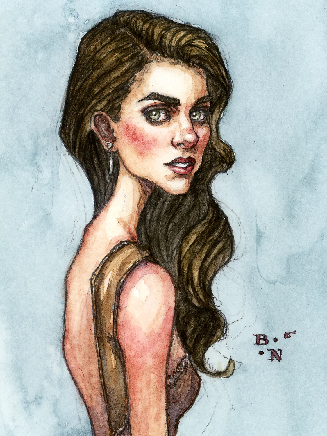 Portrait of Margaret Qualley. Drawn from web find. Early experimentation with Fabriano paper.